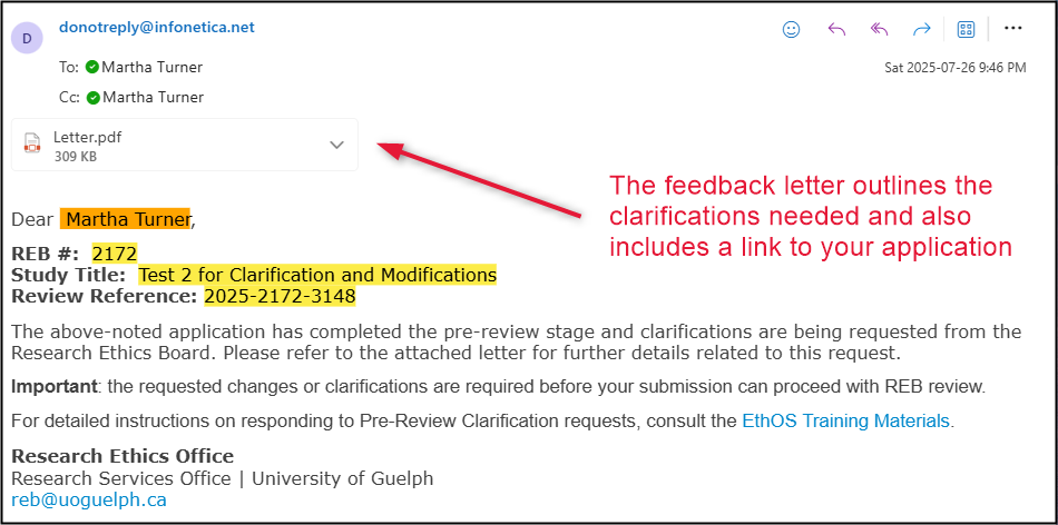 - Researchers receive an email and EthOS system notification that Pre-Review Clarification (PRC) is requested