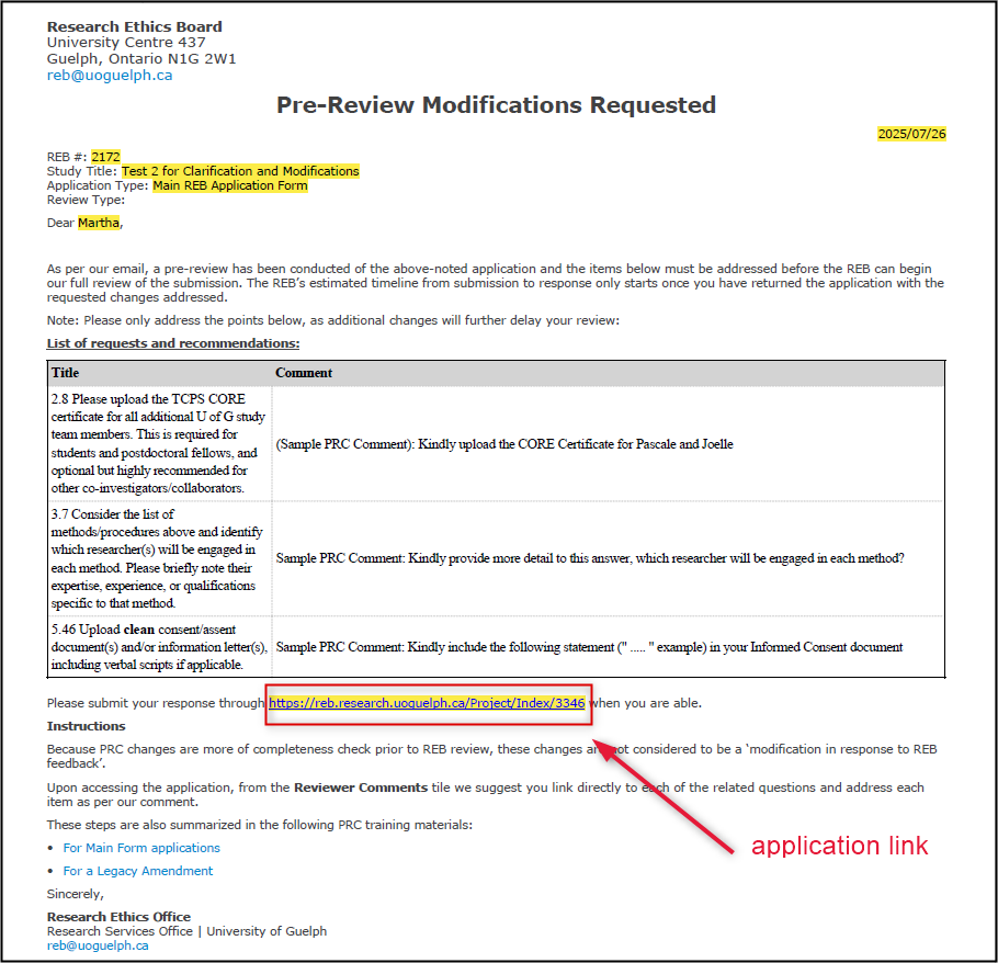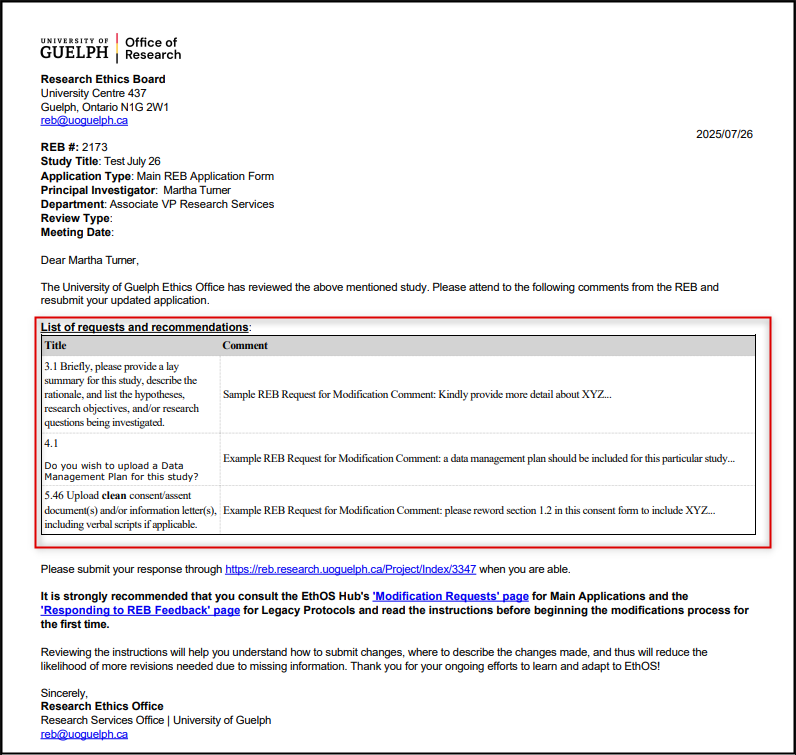 If you have any questions as you respond to clarification or modification requests, please reach out to RAIMSsupport@uoguelph.ca.
