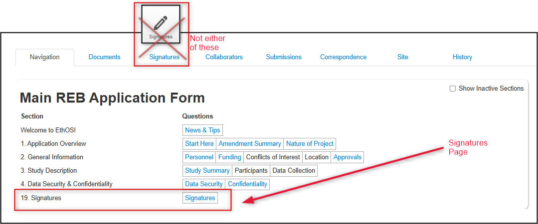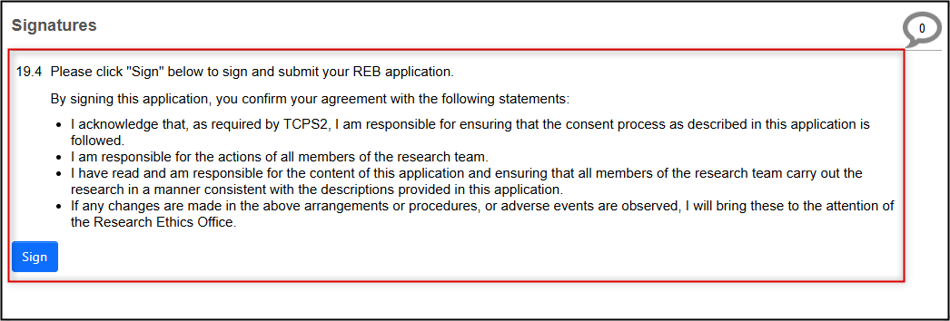 When you have finished addressing the requested items, the application must be signed and resubmitted by the PI; this can only be triggered from the Signatures page of the application