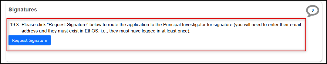 From the Signatures page, request the PI signature, or sign if you are the PI