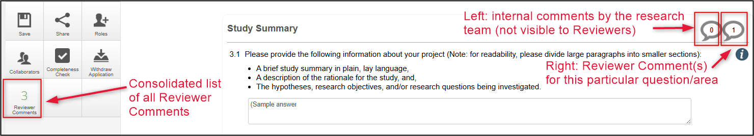 Note: you can also see reviewer comments in the right-side ‘bubble’ if a comment relates to that section