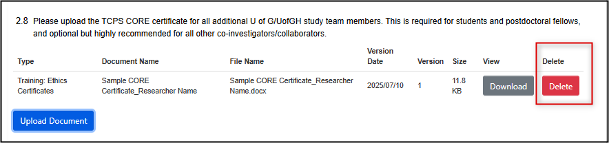 - As with all REB application forms, avoid uploading the same document in different areas of the form