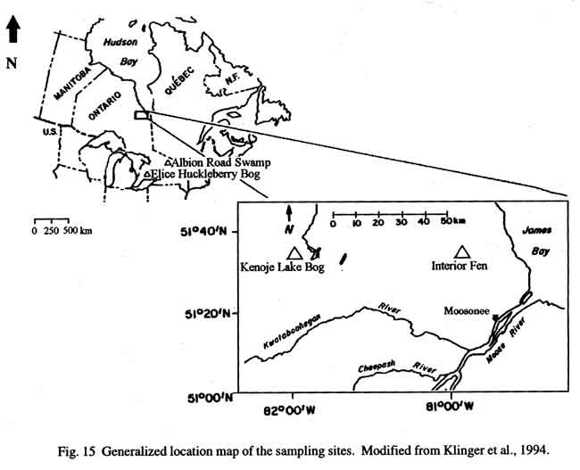 the Hudson Bay Lowland, and a swamp and bog from southern Ontario. The boreal