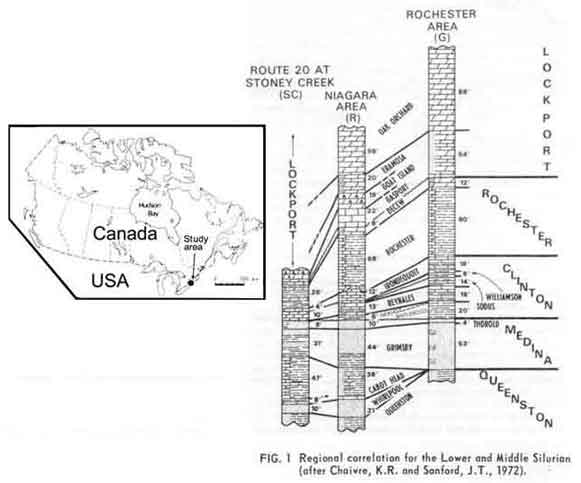 outcrops along the Niagara Escarpment between Hamilton, Ontario, and Fulton, New