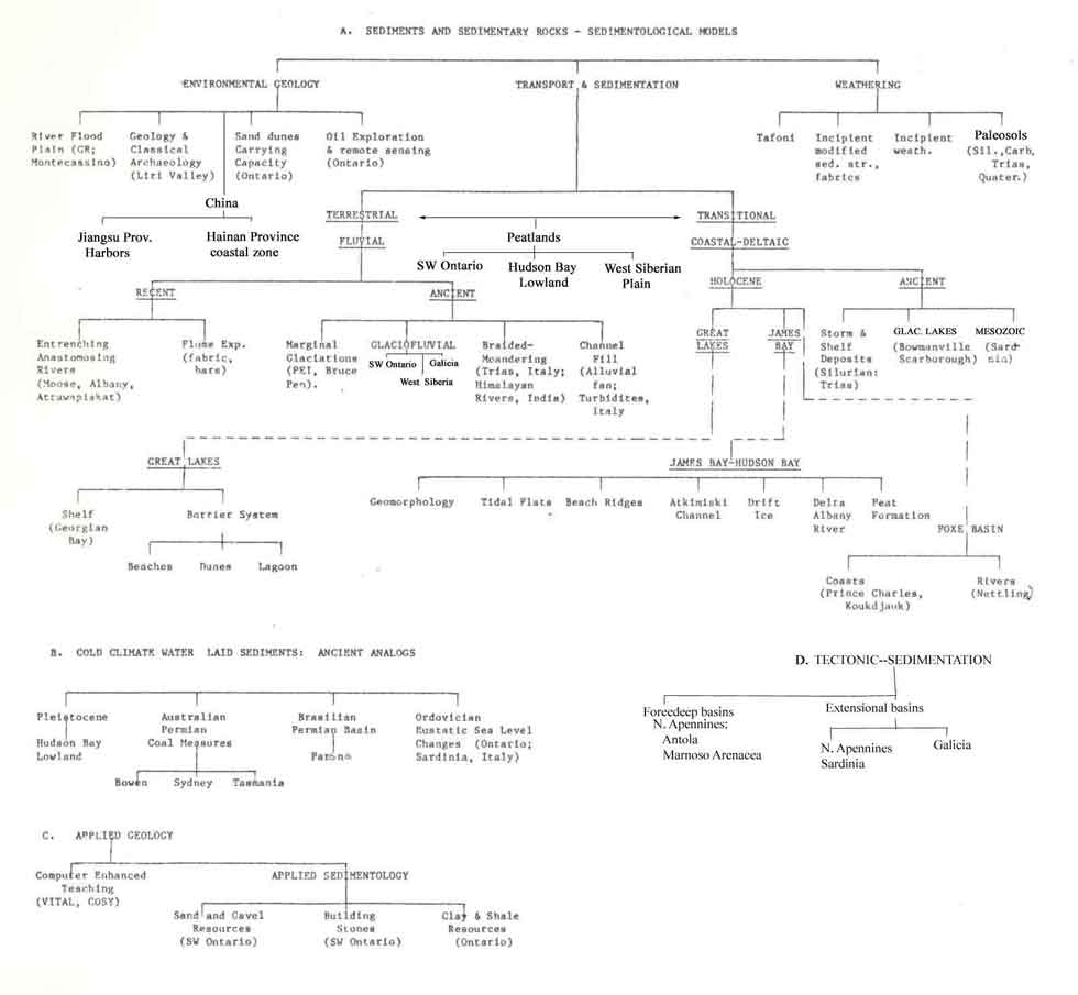 , Main fields: Sedimentology, Glacial Geology , Other fields: Fossil Fuels, Geomorphology, Paleosols , Current research: o Sedimentology of Quaternary and ancient cold climate sediments (glacial and nonglacial): - Glaciofluvial and glaciolacustrine deposits of southern Great Lakes, Canada - Coarse-grained beach deposits of lower Great Lakes, Canada - Coastal (beach ridges and tidal flats) and fluvial geomorphology and sediments of subarctic and arctic regions of Canada: Foxe Basin, Hudson Bay, and James Bay - Comparative analysis of the cold-climate peatland basins of Hudson Bay Lowland (Canada) and Western Siberian Plain (Russia) - Comparative analysis of the modern, cold-climate peatland basins of Canada and the Permian--Carboniferous cold-climate coal measures of the southern hemisphere o Sedimentation in extensional--transtensional basins, Northern Apennines (Italy) and Galicia (Spain) o Landscape evolution and Landuse of Coastal Zone, Hainan Island, China