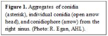 Because of the universal exposure of horses to Aspergillus and other fungi, it is important to demonstrate the presence of conidia or hyphae within diseased tissue. This may be done via cytological evaluation of affected tissue or exudates, or biopsy of affected tissues, along with culture of that material. Aspergillus grows well on most fungal culture media. AHL