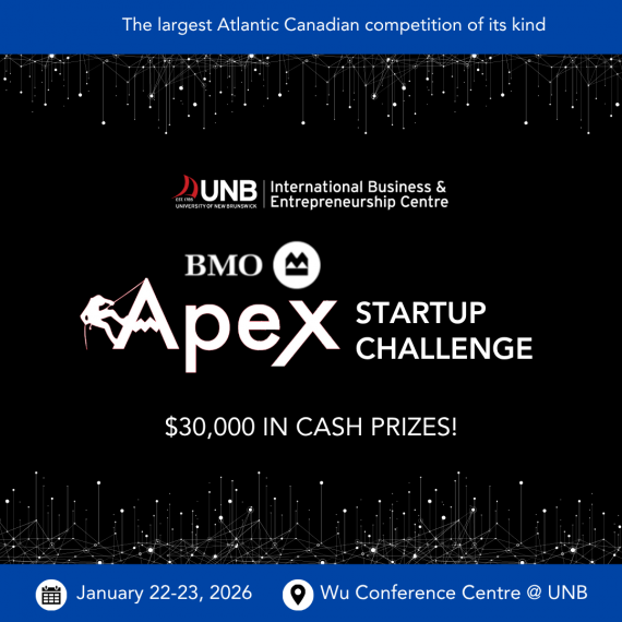 The BMO Apex Startup Challenge is the largest business plan competition in Atlantic Canada, where student entrepreneurs pitch their business ideas to panels of successful business-leaders to win up to $30,000 in prizes and awards.