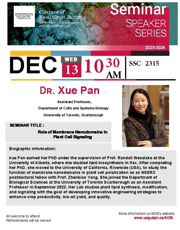 Assistant Professor of Microbiology, Joslin Diabetes Centre, Harvard University (faculty host: Dr. E. Allen-Vercoe) - December 13, 2023 at 10:30 am in SSC 2315 - Dr. Xue Pan