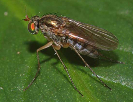 Natural historyIn general, adults and larvae prefer moist environments including stream and lake margins, humid forests, saltmarshes, seashores, and freshwater seepages, where they often occur in large numbers. Adults of some species are closely associated with tree trunks or vertical surfaces (e.g., Medetera, Neurigona, Sciapus Zeller), whereas others occur in drier habitats such as agricultural fields and grasslands (e.g., some species of Medetera and Dolichopus Latreille) or urban gardens (e.g., some species of Condylostylus Bigot). Larvae occur in mud, damp soil, leaf litter, moss, algal mats, decaying seaweed, sap wounds, under bark, in tree hole debris and within plant tissues (Dyte 1959). Before pupation the final instar spins a protective cocoon incorporating soil particles and other environmental debris, which completely encapsulates the pupa, except for the tips of the respiratory horns, which protrude from a small aperture (Dyte 1959; Corpus 1986a,b, 1988). Recent studies (Pollet 1992, 2000, 2001; Pollet and Grootaert 1991, 1996) demonstrate that dolichopodids have very specific habitat requirements and react quickly to environmental alterations, making them potentially useful as bioindicators for site quality assessment and conservation purposes.