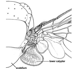 16a.   Base of wing with lower calypter large and obvious 16a'.   Base of wing with lower calypter small and rudimentary