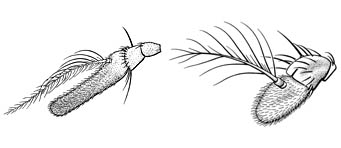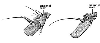 16b.   Antennal pedicel with complete dorsal seam 16b'.   Antennal pedicel usually without complete dorsal seam