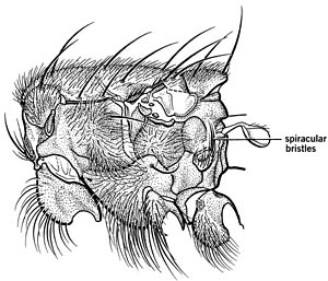 thoracic spiracle with one or more distinct bristles on posteroventral