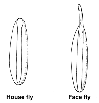 Larvae are yellowish white maggots about 5 - 12 mm long.