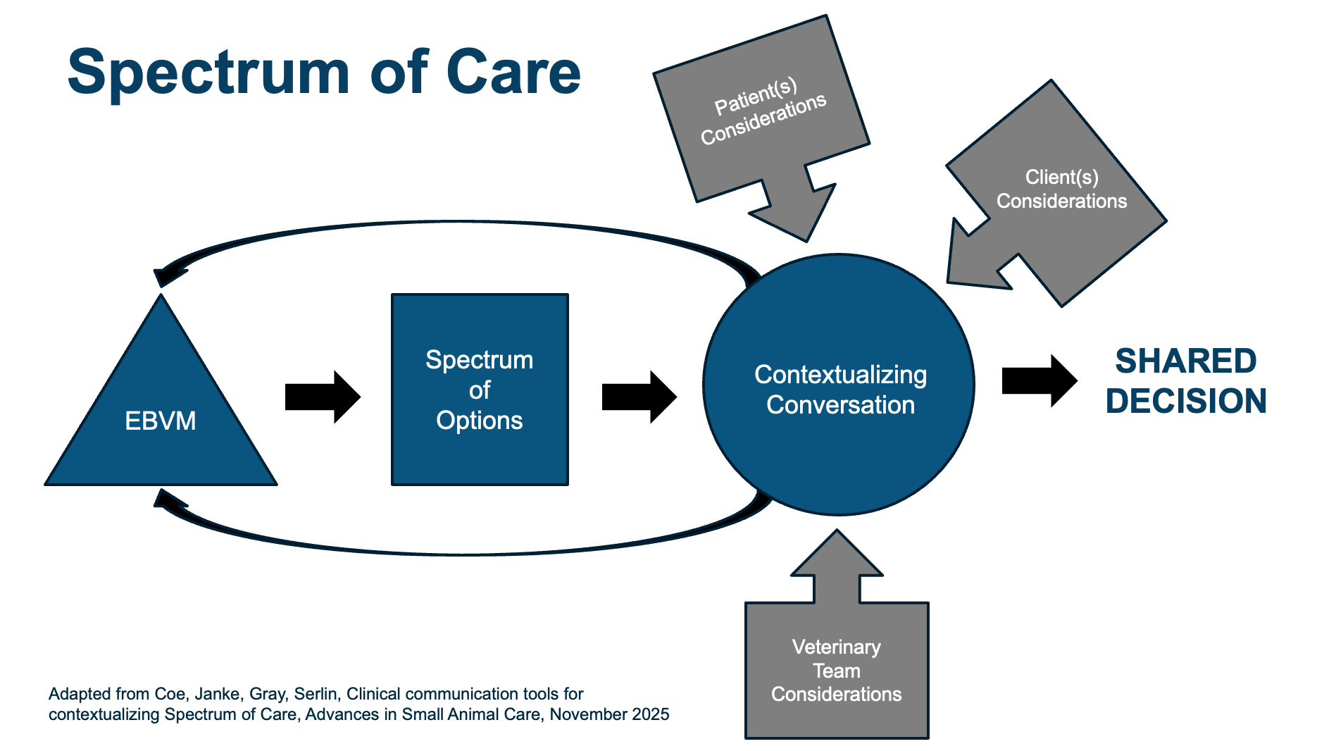 But what does SOC look like in practice? How do veterinary teams integrate evidence-based veterinary care with situational circumstances to co-create a meaningful path forward with clients?