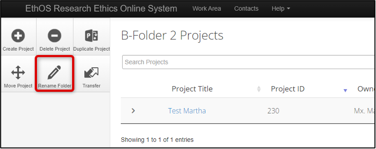 From the opened project, navigate to the top of the Project Tree hierarchy and click once on the Project Title (not the Main REB Application Form line)