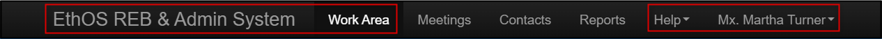- As you work in EthOS, clicking on the EthOS or Work Area title in the navigation bar will bring you back ‘home’ to the Work Area