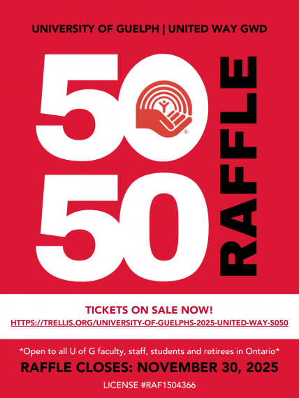 Get your tickets for the U of G's 50/50 Raffle for United Way! Open to all faculty, staff, students, and retirees: https://trellis.org/university-of-guelphs-2025-united-way-5050